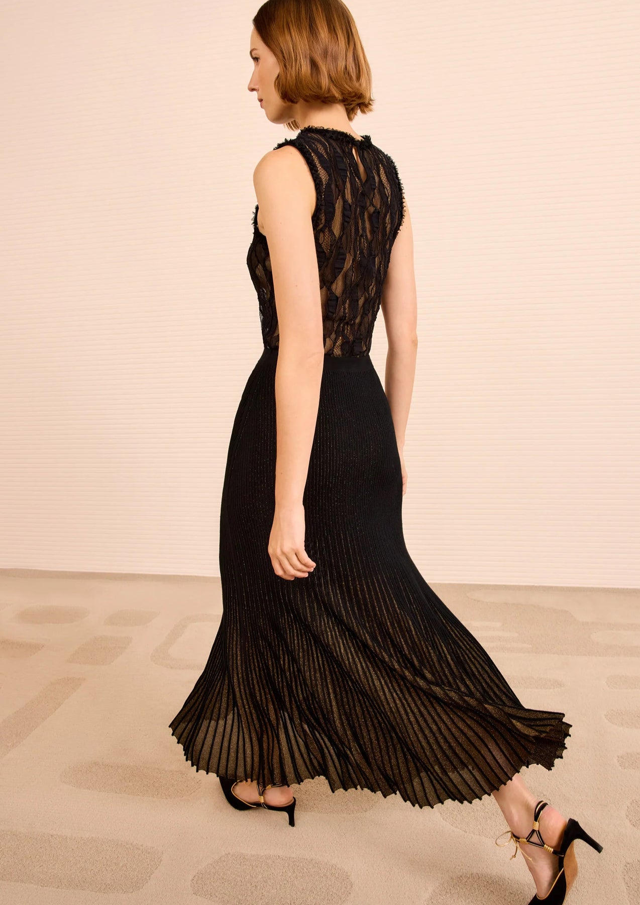 • Plissierter, ausgestellter Saum für fließende, poetische Bewegung